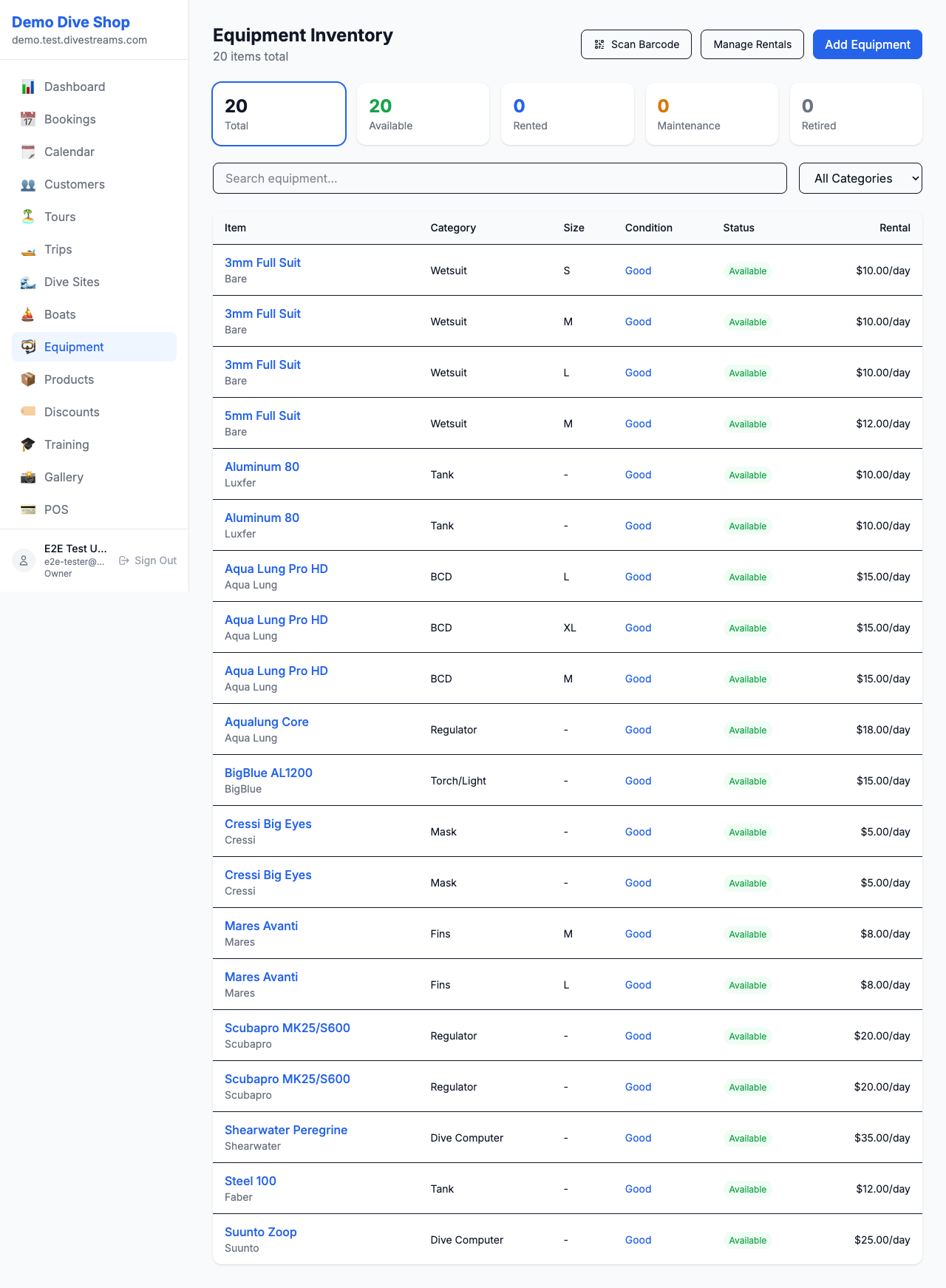 Everything you need to manage bookings, customers, equipment, and operations in one platform.